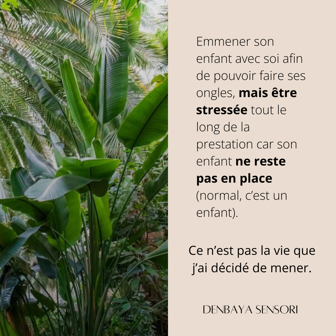 "Denbaya Sensori se présente comme une réelle solution car nous pouvons prendre le temps pour nous et permettre à nos enfants de passer un bon moment dans un cadre apaisant, sécurisé et éducatif "